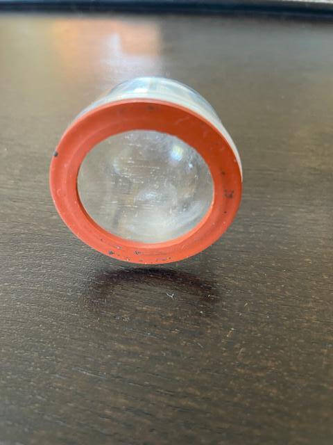 Average condition clear glass nav light lens cover. Glass is cloudy. Gasket is in good condition. 1 1/2″ at the base.
