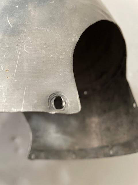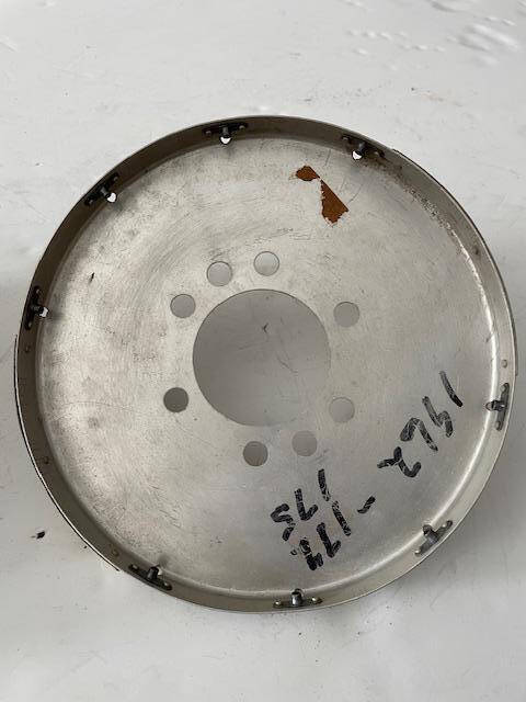 Rough condition Cessna 172 spinner; small creases, dents, ripples and a few hole elongations,, see photos. Spinner has a Serviceable tag on it. Good condition aft bulkhead.