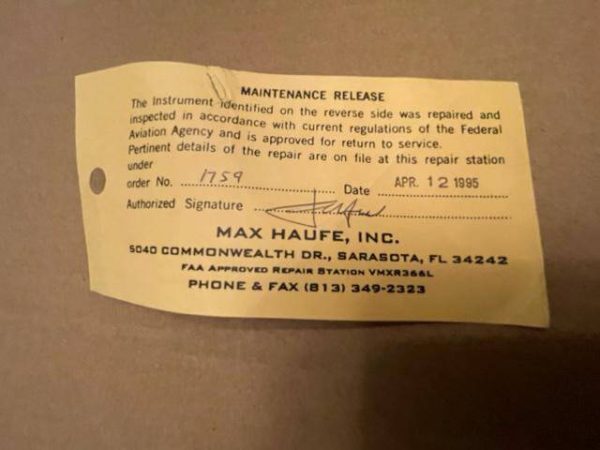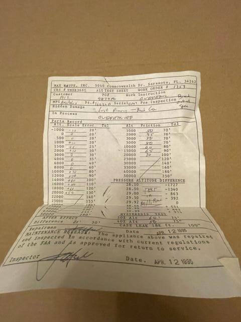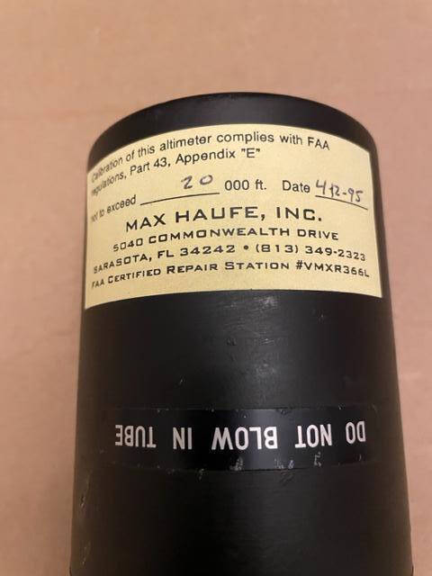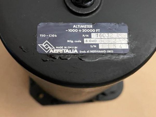 Non-functioning Aeritalia altimeter. The unit was overhauled in 1995. TSO’d. The calibration is in millibars. When adjustment is attempted the altitude hands do not move correctly, adjust,ent is not possible. Unfortunate because the condition is as new.