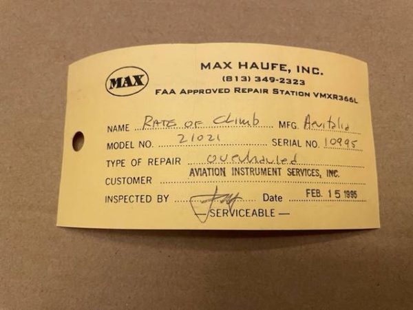 Excellent condition Aeritalia vertical speed indicator. TSO’d Overhauled in 1995, appears unused since then. The case, the face and the glass appear as new. Tested to 20,000 feet, see documentation in photos.