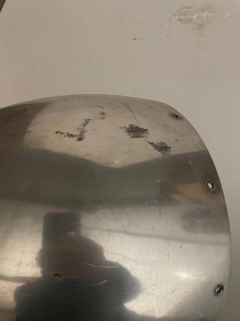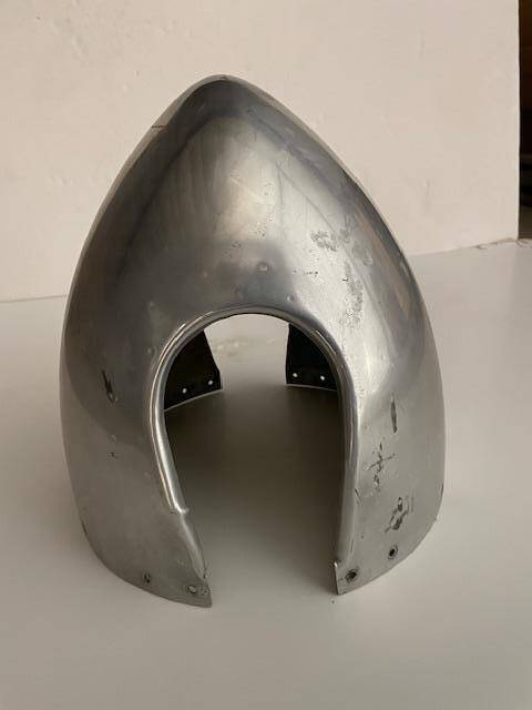 Aero Commander Hartzell 2-Blade polished spinner. Overall good condition, some surface mars, see photos. Mounting holes are good, see photos. No dents or creases.