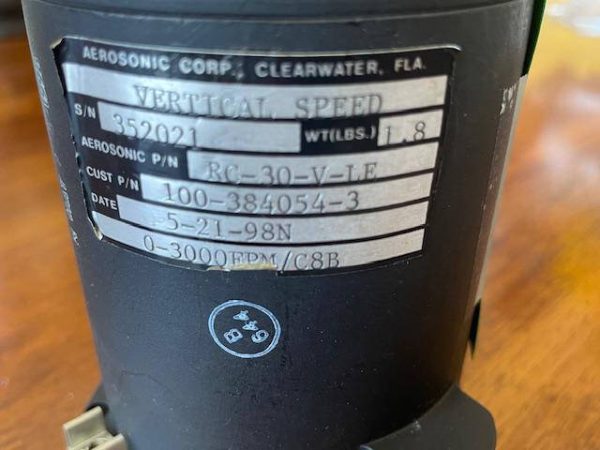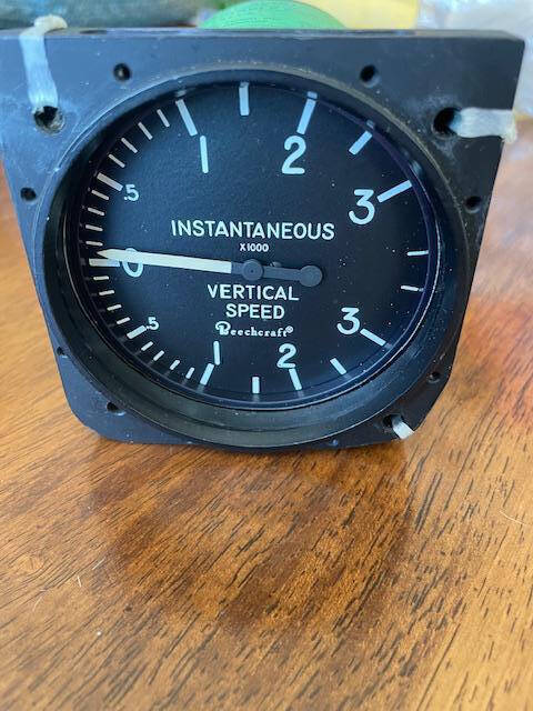 Excellent conditiion Beechcraft-Aerosonic IVSI instantaneous vertical speed indicator. Range 0-3,000 feet per minute. Removed by avionics technician from 1998 Beechcraft A36, N184DM, SN E-3199, 3,458TT for upgrade 9/13/21. 28 Volt with internal lighting.