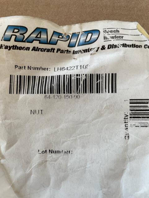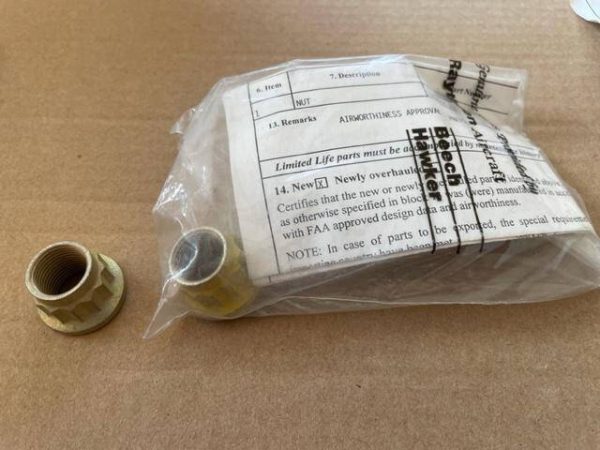 New Beechcraft Baron wing bolt nut. 12 point double hex high tensile. Wing bolts are available at SKU 1877. In original packaging, includes Form 8130.