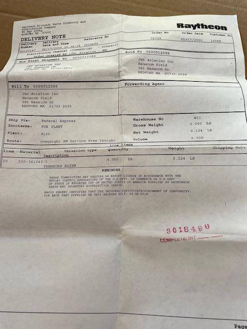New Beechcraft diode-suppressor assembly.