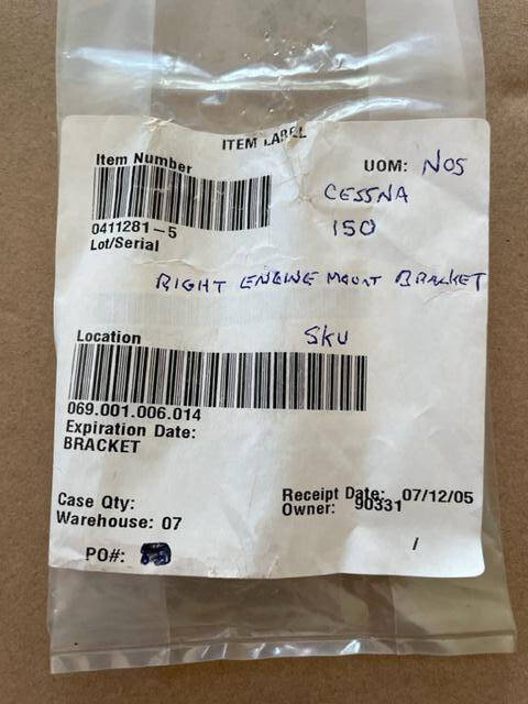 New old stock Cessna 150 RIGHT engine mount bracket.