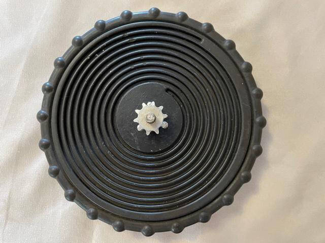 Cessna 172 182 elevator trim wheel. Used, in very good condition. 10 very good sprocket teeth, above average condition. Surface finish is good and zero roll pin movement.