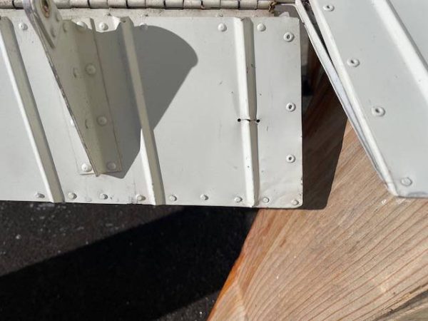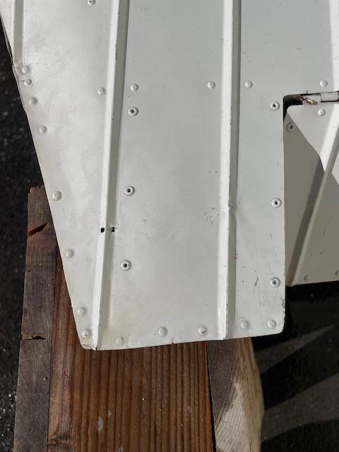 1961 Cessna 172B Right elevator and trim tab assembly. Two areas where a skin crack has been stop drilled. Surface corrosion in several areas, see photos. No patches, no hail damage and no internal corrosion issues I can see. Removed from a 1961 172B, N6850X, SN 17247750.