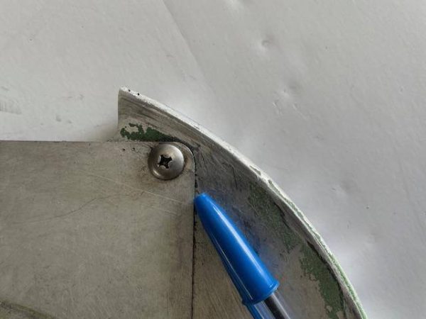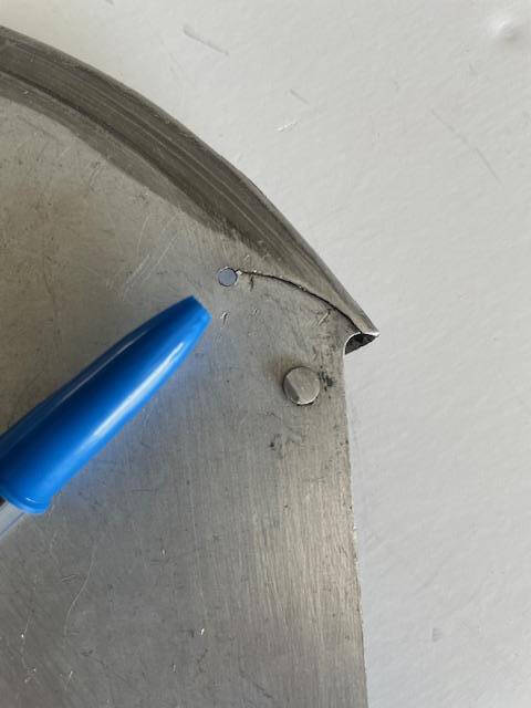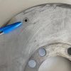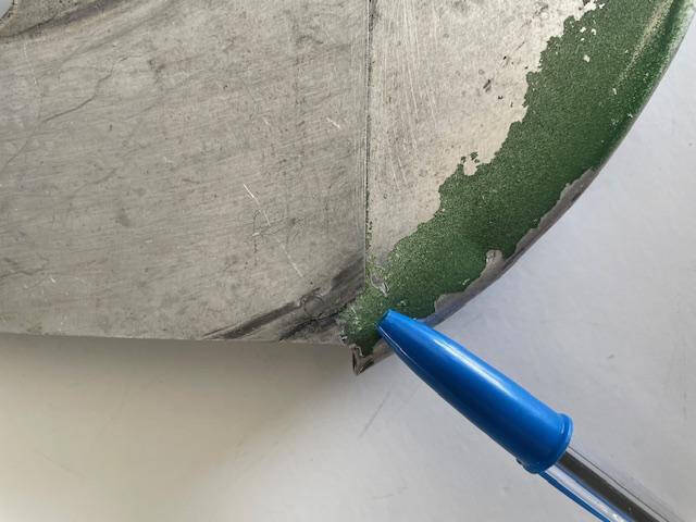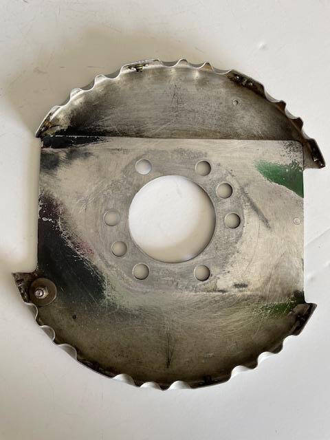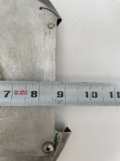 Cessna 172G thru 172H spinner aft bulkhead core. Several issues: extra hole drilled in plate, crack with stop drill and a bolt and washer used to secure plates together. The good news is one of the plates is good and can be used to repair another bulkhead, see photos. Bolt holes are `1/2″.
