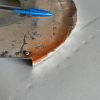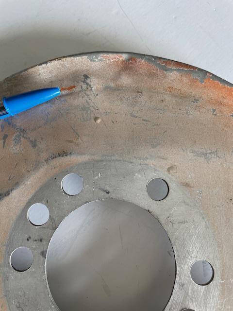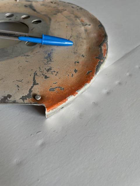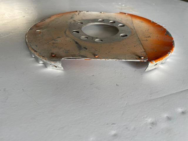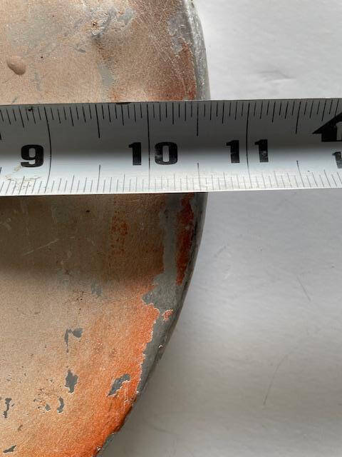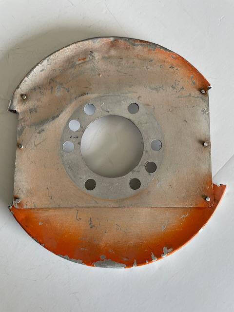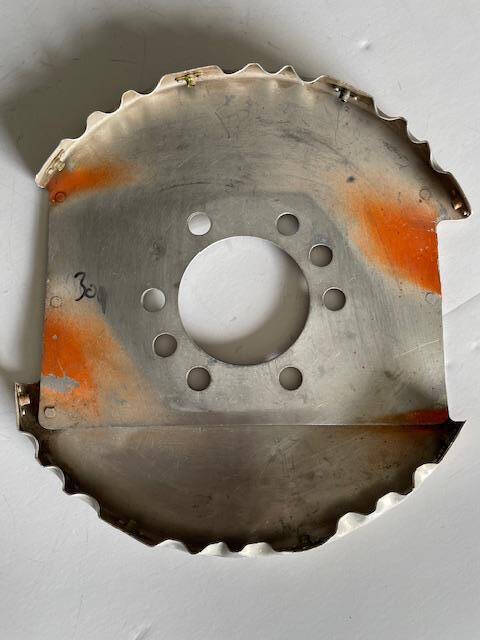 Cessna 172G thru 172H spinner aft bulkhead. The bulkhead has one area with a swale/ripple and small dent, see photos. Bolt holes are 1/2″.