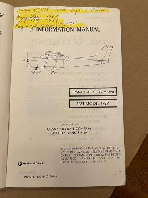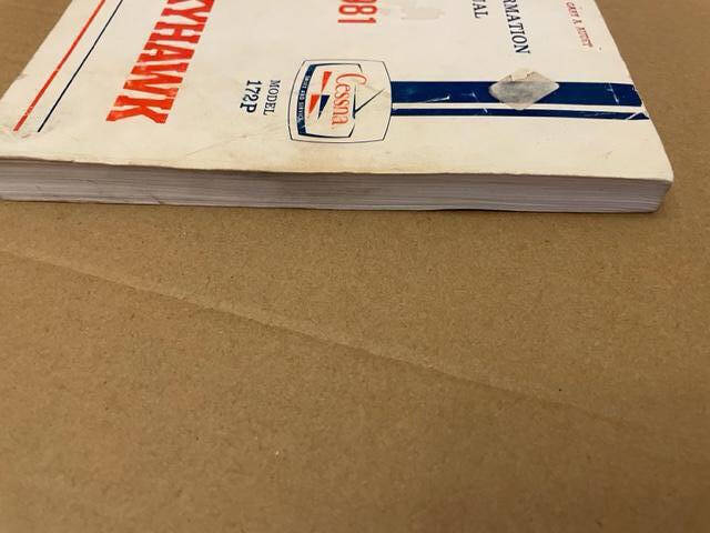 Good condition 1981 Cessna 172P Information Manual. Normal wear; tape on binder-see photos, page edges are a little dirty and a few areas are hi lighted with a few notes.