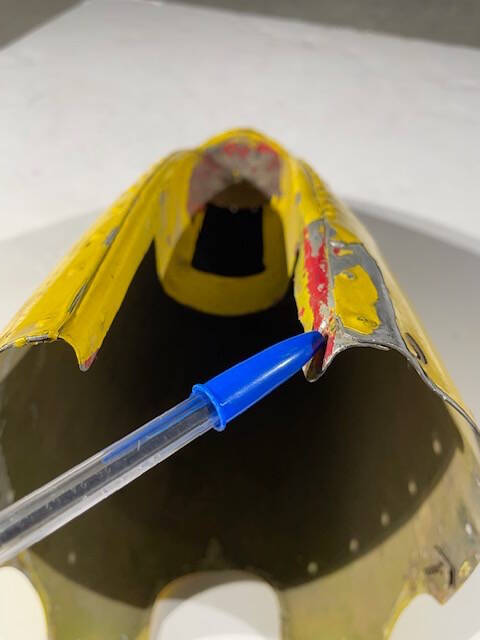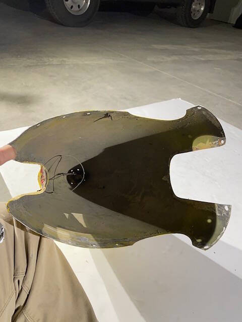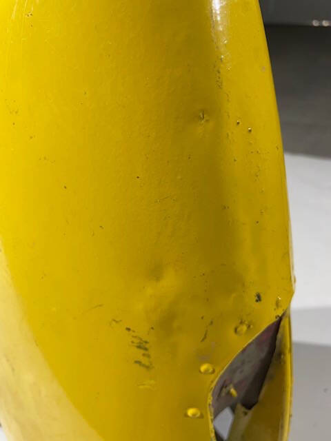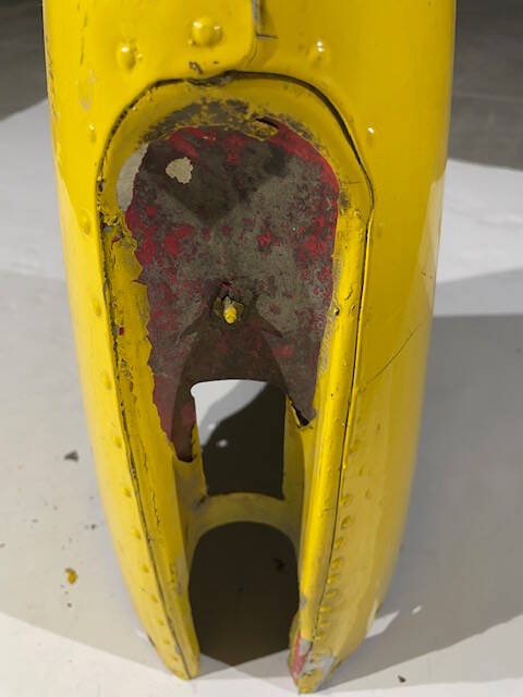 Cessna 180 and 185 tail cone stinger assembly with tail light installed. Several small dents, bottom skin has a sllight roll in it, and a few mounting holes are elongated, see photos. Otherwise, no repairs and no corrosion.