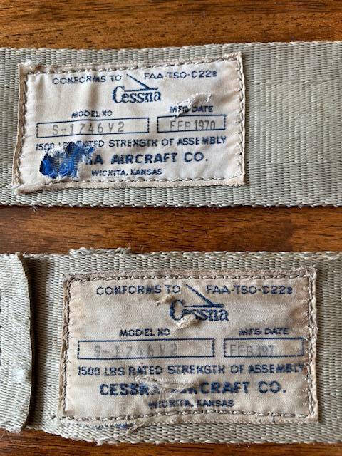 Good condition Cessna 182 Co-Pilot’s side seat belt assembly. Light Olive color; some stains, no fraying, very minor fraying in a few areas. Tags still on belts. Minimal fading and chrome is very good and without pitting, rust or corrosion. Belt pulls through easily. Shoud clean up nicely. Fits other Cessna single engine airplanes.