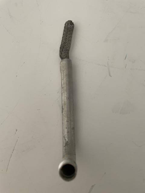 Good condition Cessna 182 AFT fuel tank vent finger strainer. Screen is bent a little but the solder is intact and no blockage. Removed from a 1965 Cessna 182J, N8304S, SN 18256404