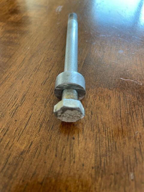 Cessna 206 nose fork tow bar spacer and bolt. Bolt is 3 7/8″.