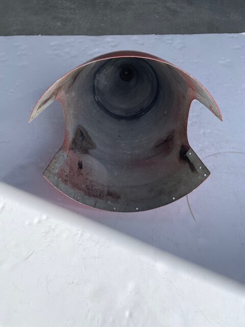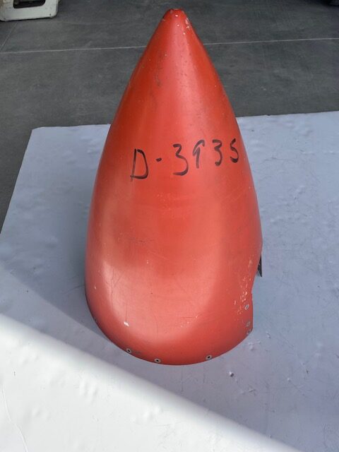 Cessna 310J thru 310P 2-blade McCauley propeller spinner. Excellent condition; no tip dent, no creases or dents, mounting holes are all good and no corrosion.