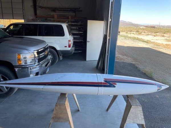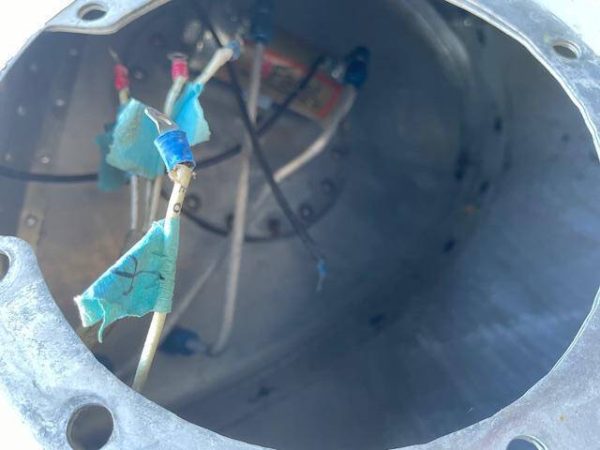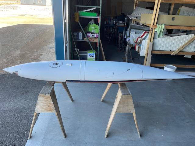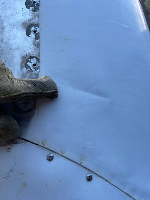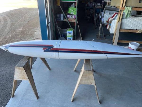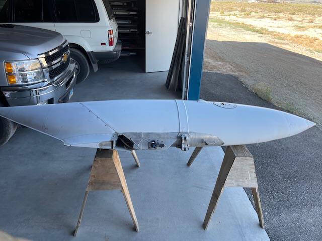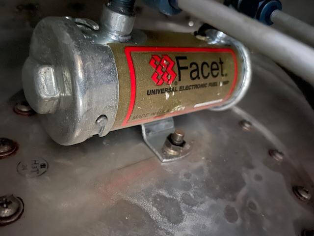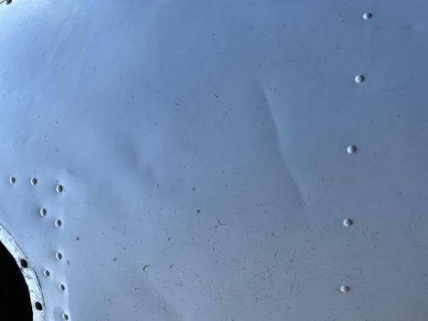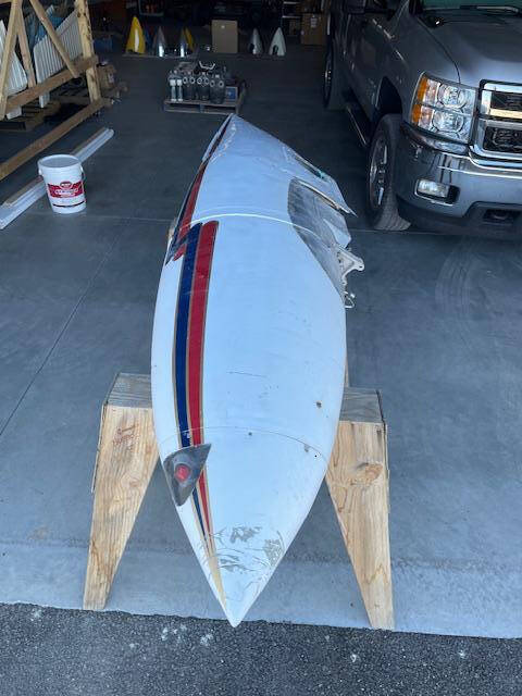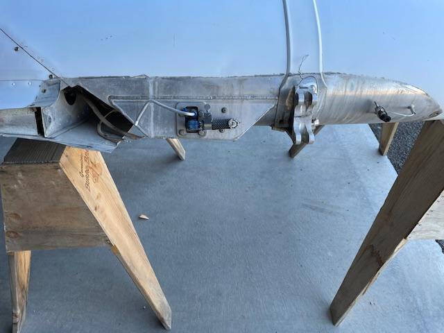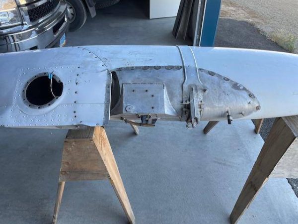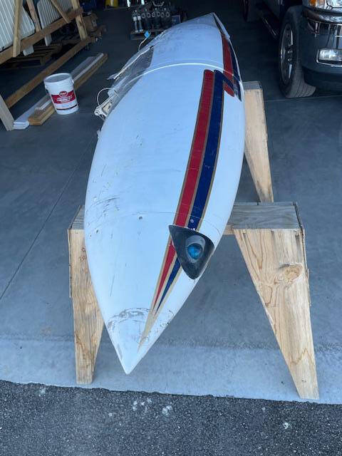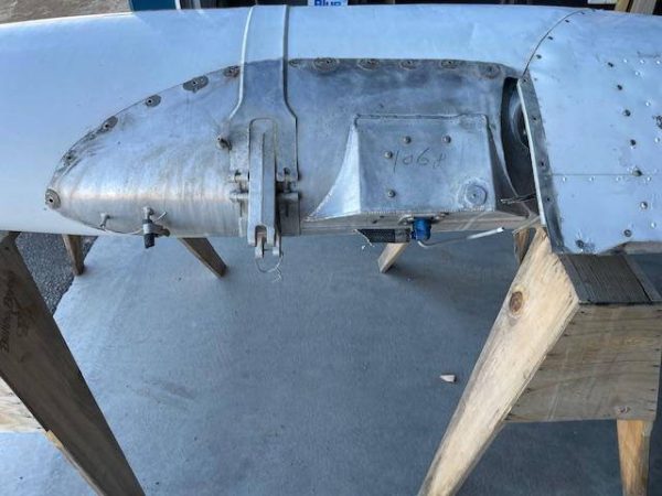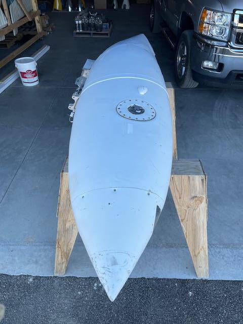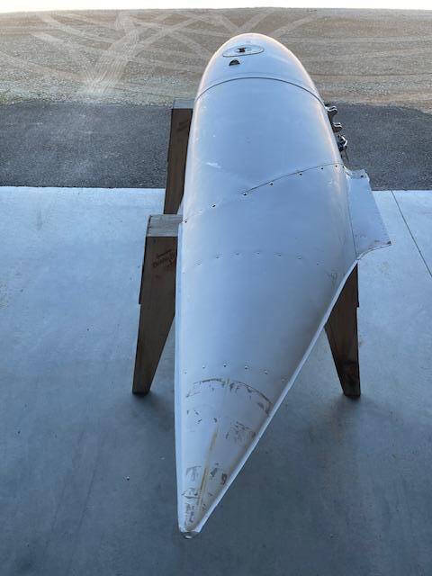 Cessna 310K LEFT main wing tip fuel tank. The tank is complete with main fuel pump, transfer pump, fuel sending unit, fuel cap and nav light assembly. The paint is faded but is in good condiiton with a few creases, no hail damage, no significant dents, norepairs and no corrosion, see photos.