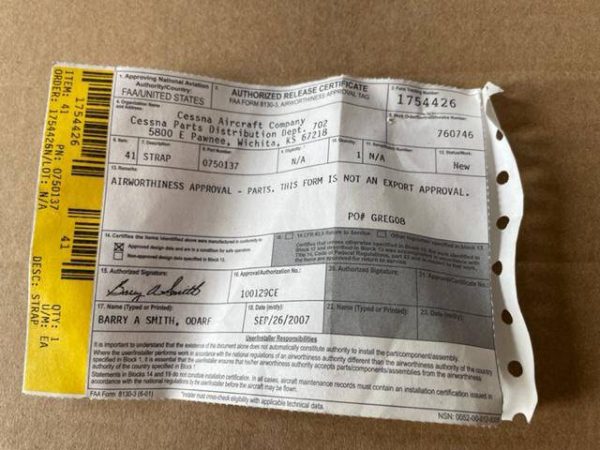 Cessna 180, 182, 185, 188, 205, 206, 210. Includes Form 8130.