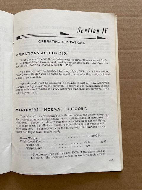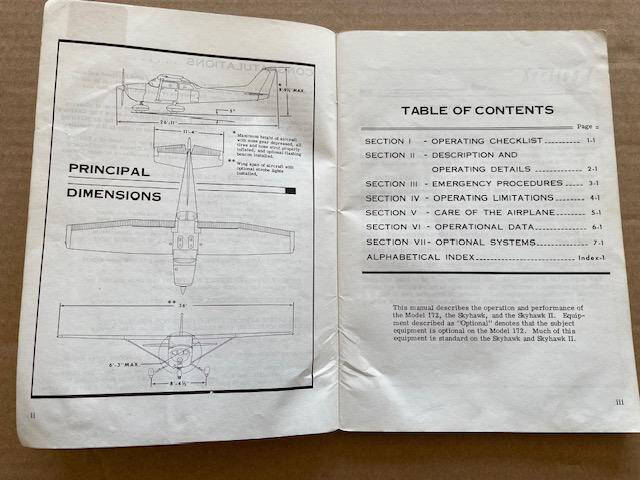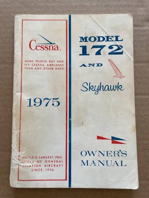 Average condition 1975 Cessna Model 172 And Skyhawk Owner’s Manual. Cover is slightly below average but pages are good with some wrinkles, see photos for details.