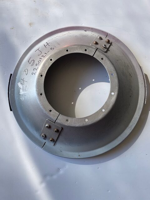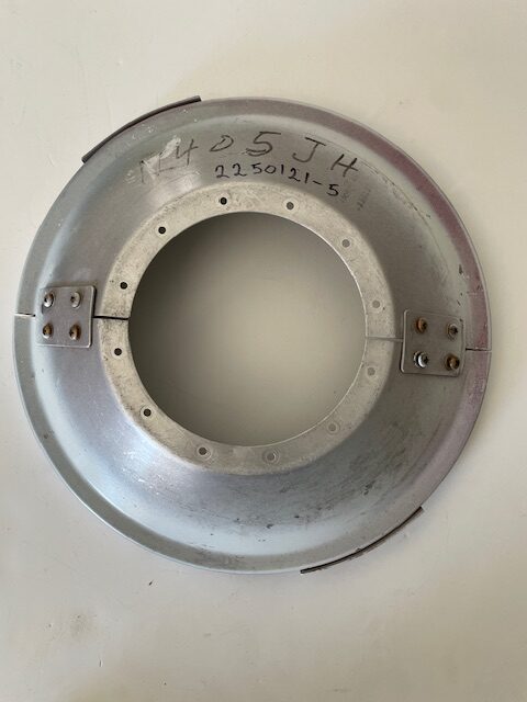 Cessna R182 2-blade spinner aft bulkhead complete assembly. Excellent condition; no warping, no damage, no corrosion and no mounting hole elongation. This unit includes both halves, and mounting brackets that connect the two halves. these cost $3,700 new.
