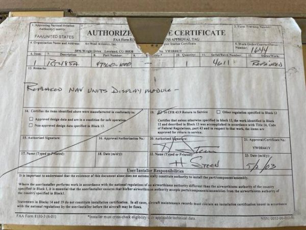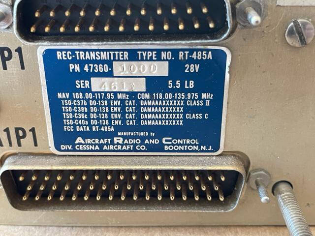 Cessna RT-485A Nav-Comm With 8130. Repaired. Used.