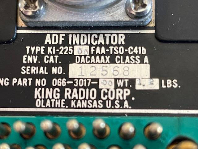 King KI-225 automatic direction finder indicator. Working when removed from Cessna 206D. Indicates repaired and functional, no date given.