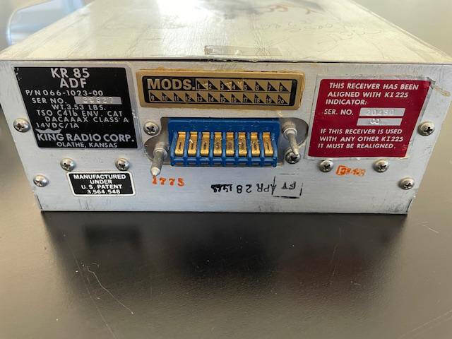 King KR-85 automatic direction finder receiver. Indicates repaired and functional but not date given. Includes tray. Very good facia, some wear on knobs. 14 Volt. Working when removed from Cessna 206D for upgrade.