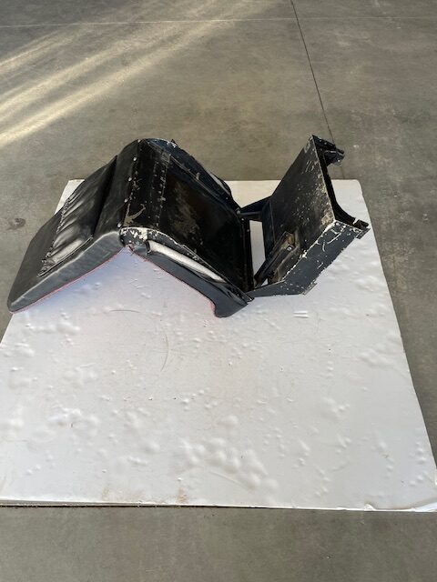 Lake LA4-180 front folding seat.  This seat folds all the way forward; very good condition; no rips, tears, damage or stains.  Fabric has minimal wear.  This was the pilot’s seat, but will fit either side.  All mechanisms work correctly.  13 inches from roller to roller on center.