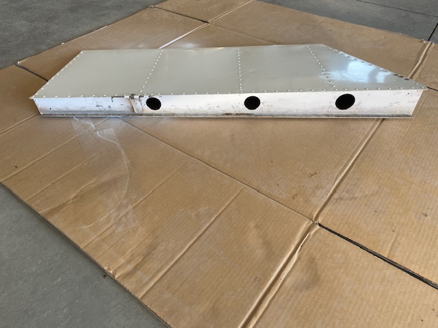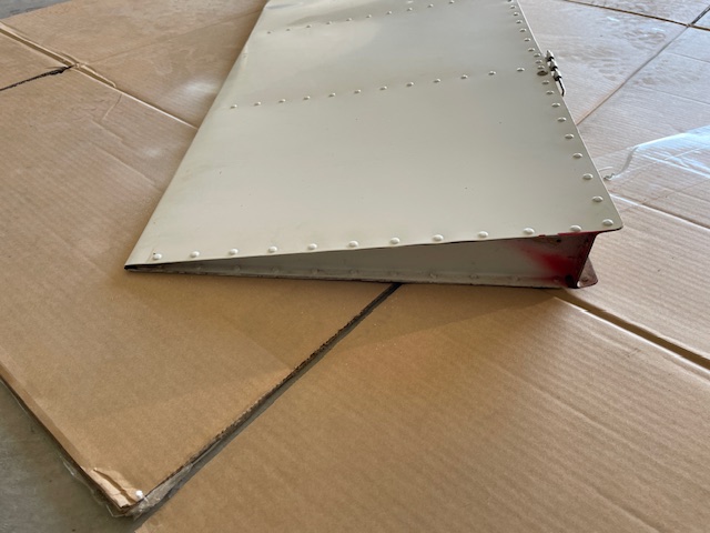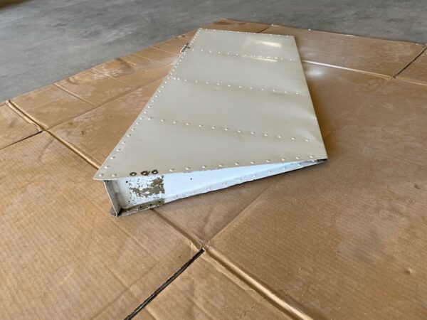 Lake LA4-180 RIGHT elevator.  Very good condition with one exception; the trailing edge has a skin crack that resulted in a mild 4″ surface crease, see photos for details.  Otherwise; no corrosion, no repairs and the paint is in very good condition.