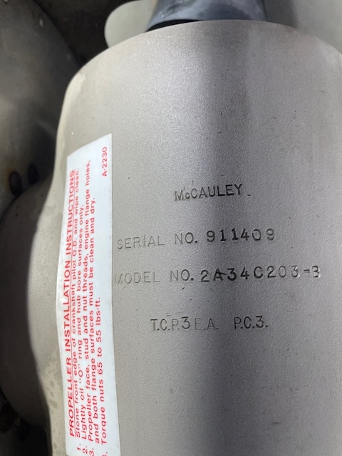 McCauley 2-blade constant speed propeller in good used condition. Blades are very clean; no dents, dings, gouges or leaks. Hub appears very clean, oil filled. Was fitted to a Cessna 182E Continental O-470R engine. Measures 82″ from tip to tip. No log books or time available. Removed from a 1962 Cessna 182E, N2987Y, SN 18253987