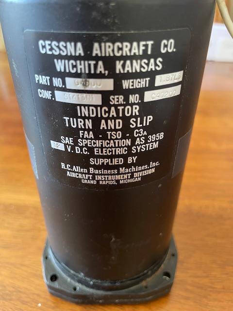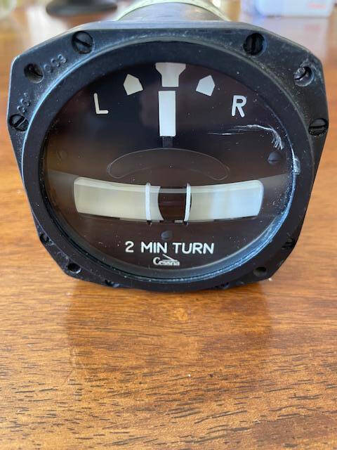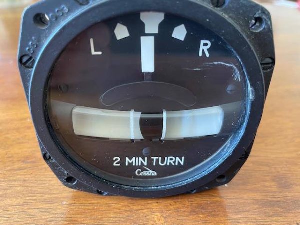 Very nice condition RC Allen-Cessna turn and slip indicator. 12 volt DC. Glass has a scratch in the upper right corner, see photos. Otherwise; glass is clear and not fogged, indicies and markings are very clear and bright with zero fade. Ball floats a 1/4″ to right of center.