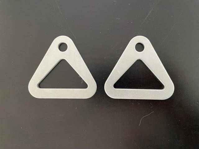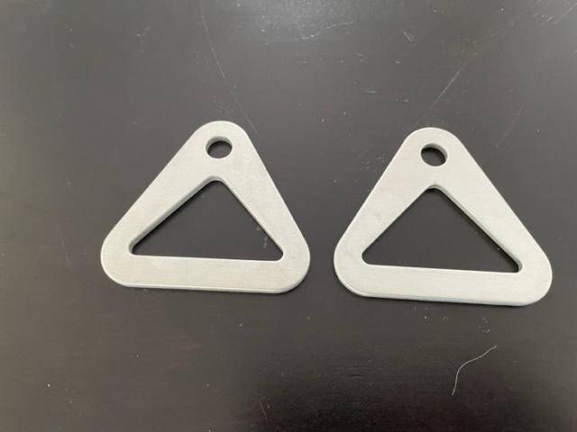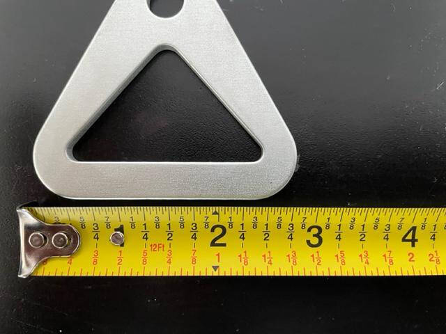 New old stock heavy duty aluminum seat belt anchor bracket. 2 3/4″ base. 2.11″ interior bottom of triangle.