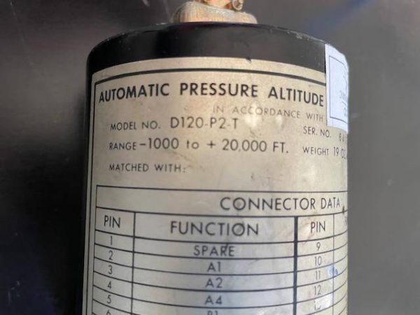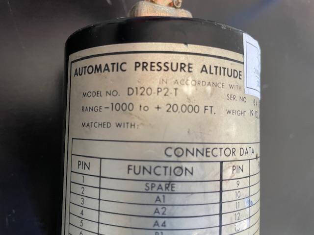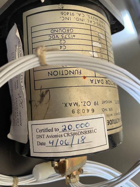 Trans-Cal automatic pressure alitutde encoder/digitizer. Certified to 20,000 feet. Last inspected 2018. Working when removed from Cessna 206D for upgrade. Incluide connector and wires.