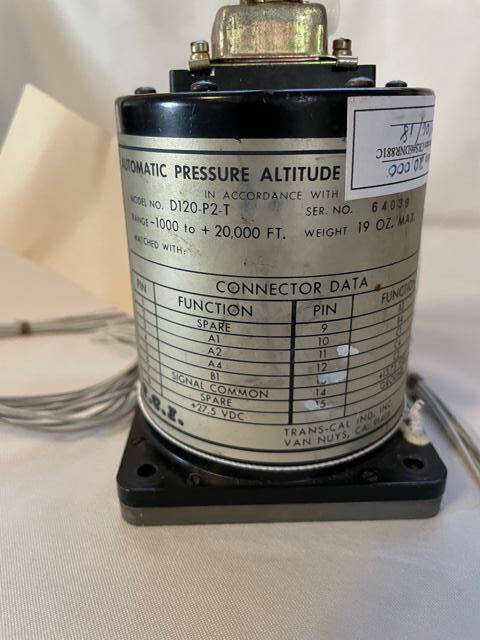 Trans Cal automatice pressure altitude digitized reporter. Last calibrated in 2018. Working when removed from a Cessna 206 owned by a large avionics shop. Certified to 20,000 feet.